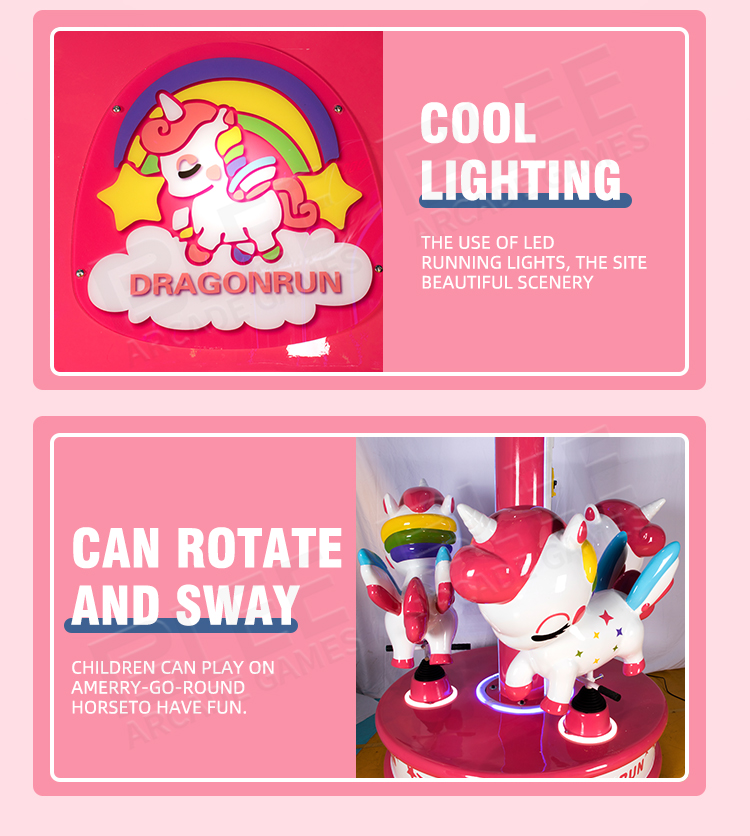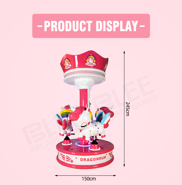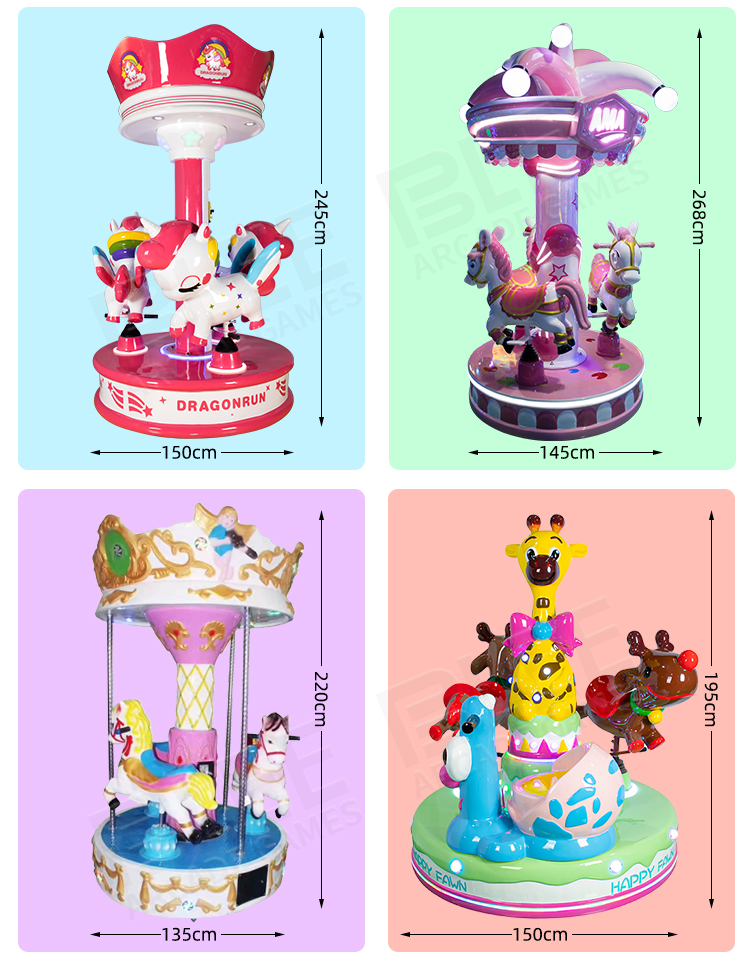 It is widely used in playground, square, park, kindergarten, playground, funfair etc. BLEE carousel horse adopts high-quality glass fiber reinforced plastics, and have the feature of environmental, corrosion resistance, high stability and reliability and very beautiful, it is very welcomed and loved by market and children.
