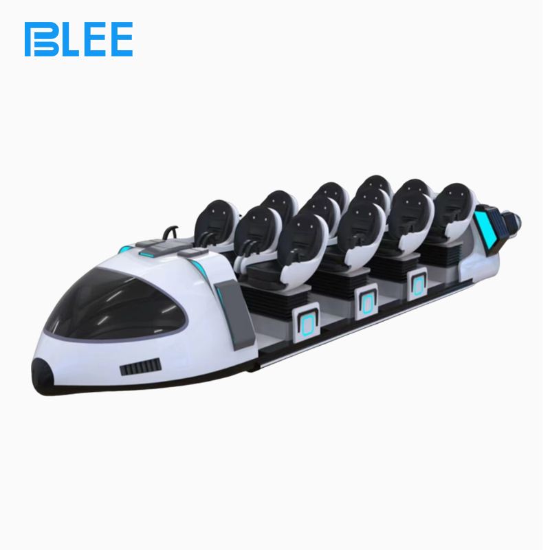 The BLEE VR Interstellar 12-Seat Experience Pod is a monumental group VR attraction that transports up to twelve players simultaneously on extraordinary journeys across the cosmos. This large-scale motion theater (machine dimensions: L8000×W3500×H1500 mm, net weight: 1000KG) features twelve synchronized motion seats arranged in a spacious, theater-style layout, each equipped with a high-performance Dapeng E3S headset. Groups explore over 120 programs together: interstellar travel, alien world exploration, space fleet battles, zero-gravity adventures, planetary landings, and cooperative rescue missions. The low-profile 1500mm height allows the pod to fit beneath standard ceilings while the massive 8-meter length creates an imposing presence. The 19-inch external spectator screen allows waiting guests to monitor all twelve players’ perspectives, mission status, and team rankings. The powerful 8KW system with universal voltage compatibility (110V–240V, 50-60Hz) delivers smooth, synchronized motion for all twelve seats simultaneously. The massive 1000KG steel construction ensures rock-solid stability.